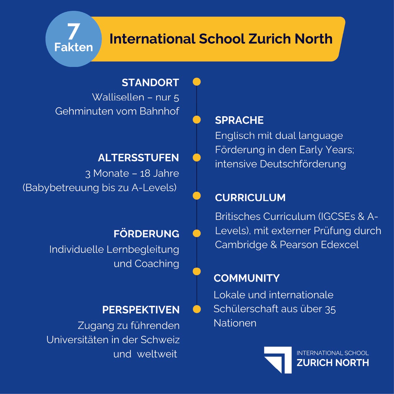 Die International School Zurich North (ISZN) in Wallisellen bietet ihren Schülerinnen und Schülern genau diesen Weg – von der spielerischen Frühförderung im zweisprachigen Setting bis hin zur gezielten A-Level-Vorbereitung. Fachkundige Lernbegleitung, Coaching und ein unterstützendes Umfeld ermöglichen eine Bildung, die persönliche Entwicklung und Leistungsorientierung vereint. Ein vielfältiges Co-Curricular-Programm mit sportlichen, kreativen und sozialen Aktivitäten – darunter leistungsstarke Teams in Basketball, Volleyball und Fussball – erweitert das Lernen über den Unterricht hinaus und stärkt Gemeinschaft, Eigeninitiative und Selbstvertrauen. Dass die Schule direkt an den öffentlichen Verkehr angebunden ist und sowohl internationale als auch lokale Familien anspricht, unterstreicht ihre Offenheit und Zukunftsorientierung.