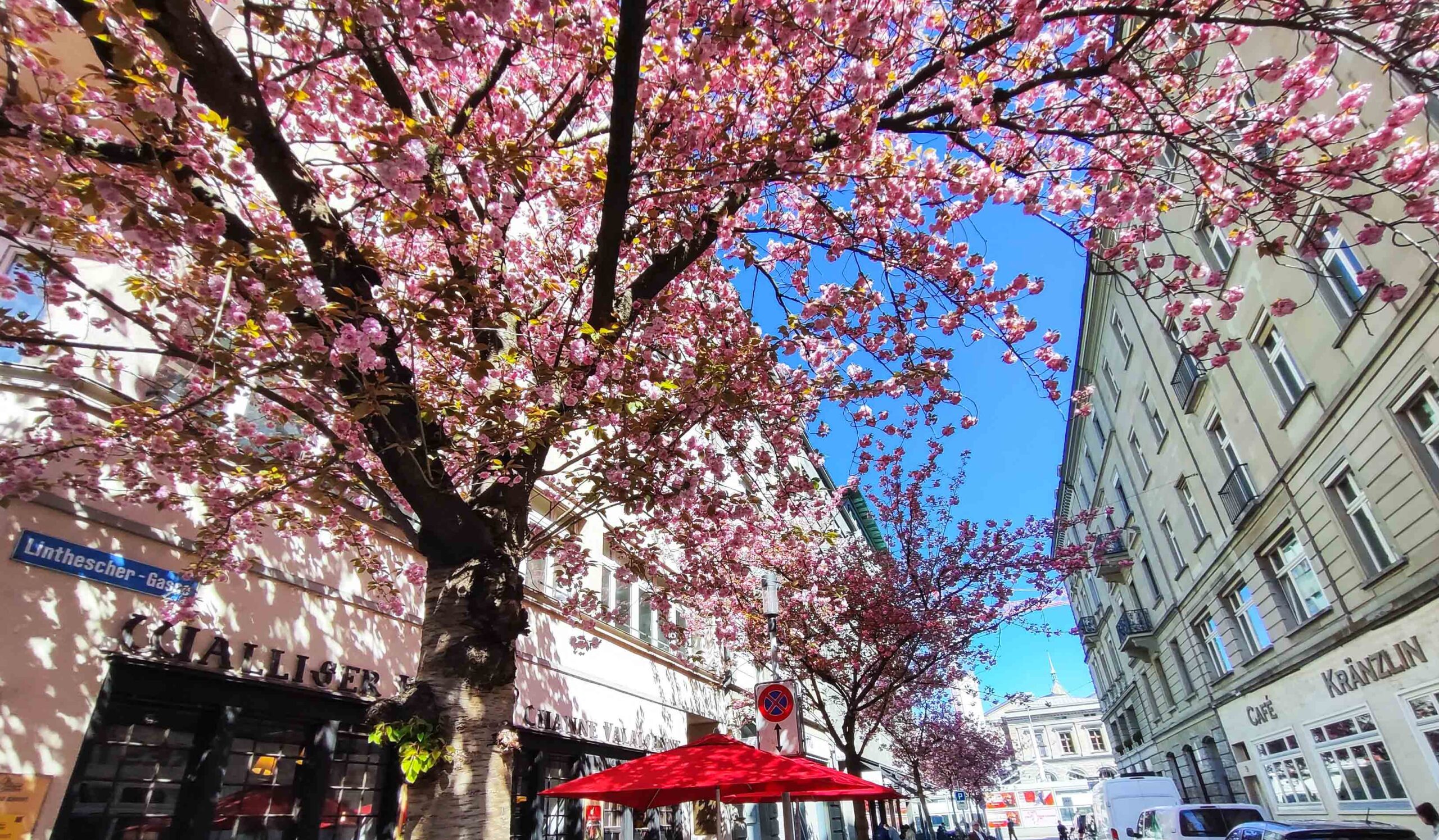 Die Zürcher Linthescher-Gasse blüht. In hellem Rosa leuchten die Kirschen auf der westlichen Strassenseite. In Japan feiert man um diese Zeit, zu der die Kirschblütenfront Tokio erreicht, das Blumenfest «Hana Matsuri» oder auch «Kan Butsu E» – zu Ehren eines besonderen Geburtstags.