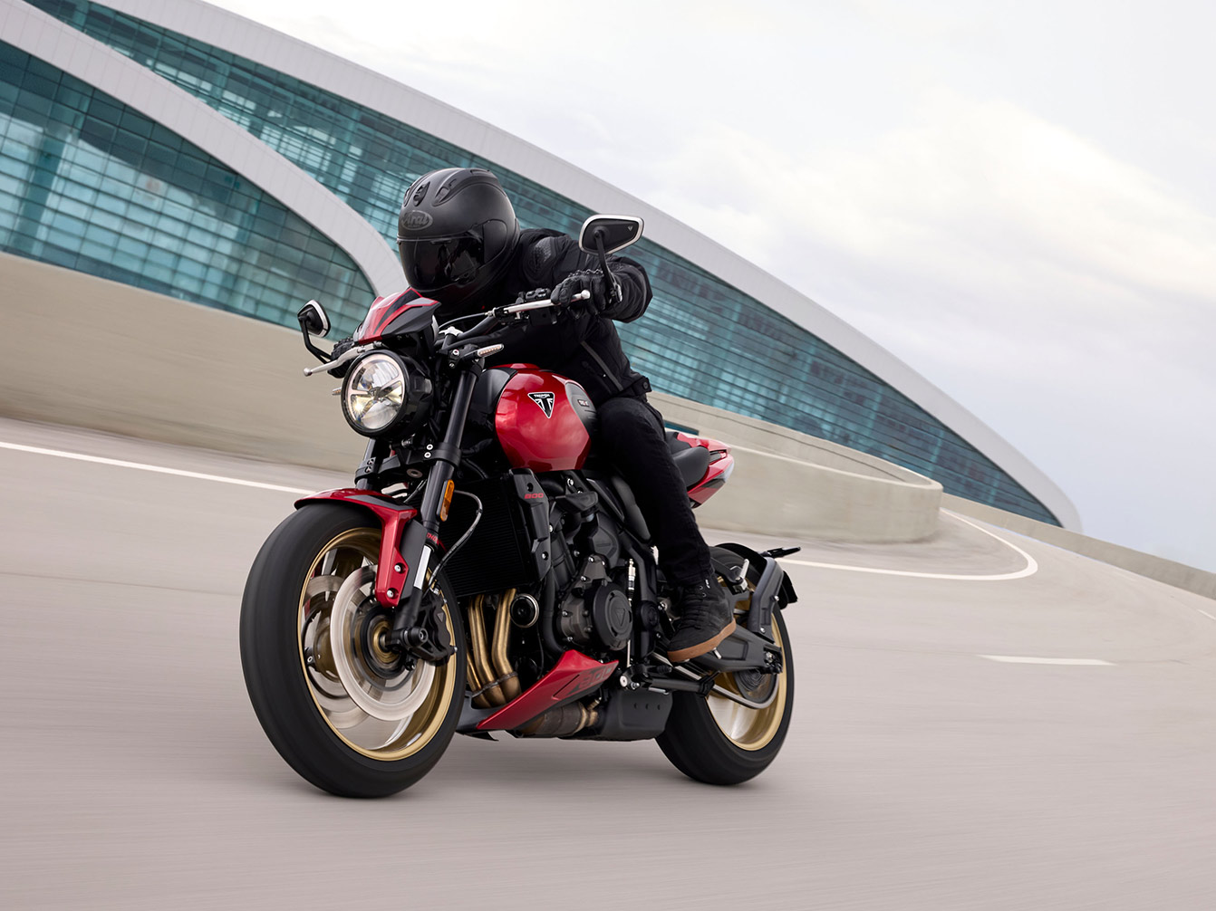 Mit der Triumph Street Triple 765 und der Triumph Speed Triple 1200 hat Triumph Motorcycles zwei Modelle im Programm, die zu den sportlichsten und leistungsstärksten Motorrädern zählen, die derzeit auf dem Markt erhältlich sind. Auch die artverwandte Trident-Baureihe steht für markentypischen Dreizylinder-Fahrspass – allerdings in klassischerem Design und zu einem besonders attraktiven Preis-Leistungs-Verhältnis.